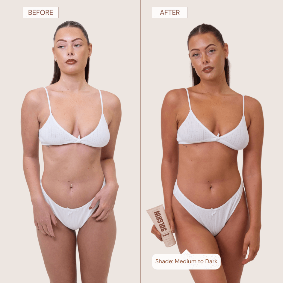 Our Tan Drops mix right into your daily moisturiser, so you control the shade! For a light, natural glow mix 2-3 drops into your usual moisturiser and apply.
